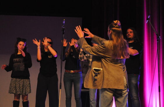 "TEN SING ist, wenn man trotzdem klatscht!" - TEN SINGer sind füreinander da und keiner braucht sich hier für irgendetwas zu schämen. Das zeigt sich spätestens auf dem Konzert: wenn die Technik ausfällt oder Romeo seinen Text vergisst, ist der Applaus und Jubel umso größer. Das Publikum besteht nämlich - natürlich neben euren Eltern - aus anderen TEN SING Gruppen aus der Umgebung, die selbst genau wissen, wie das ist, wenn man da auf einmal alles vergisst!